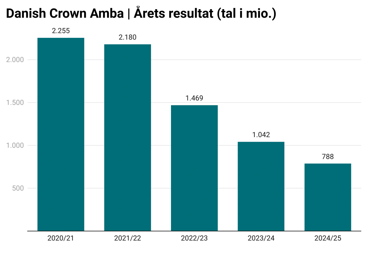 Regnskabsåret 2024/25 bød på tilbagegang på både top- og bundlinje for Danish Crown. Ifølge slagteriselskabet vil der de kommende to år være fokus på »at gennemføre en omfattende transformation af koncernen, så der skabes et solidt fundament for en sund og konkurrencedygtig virksomhed på lang sigt«.