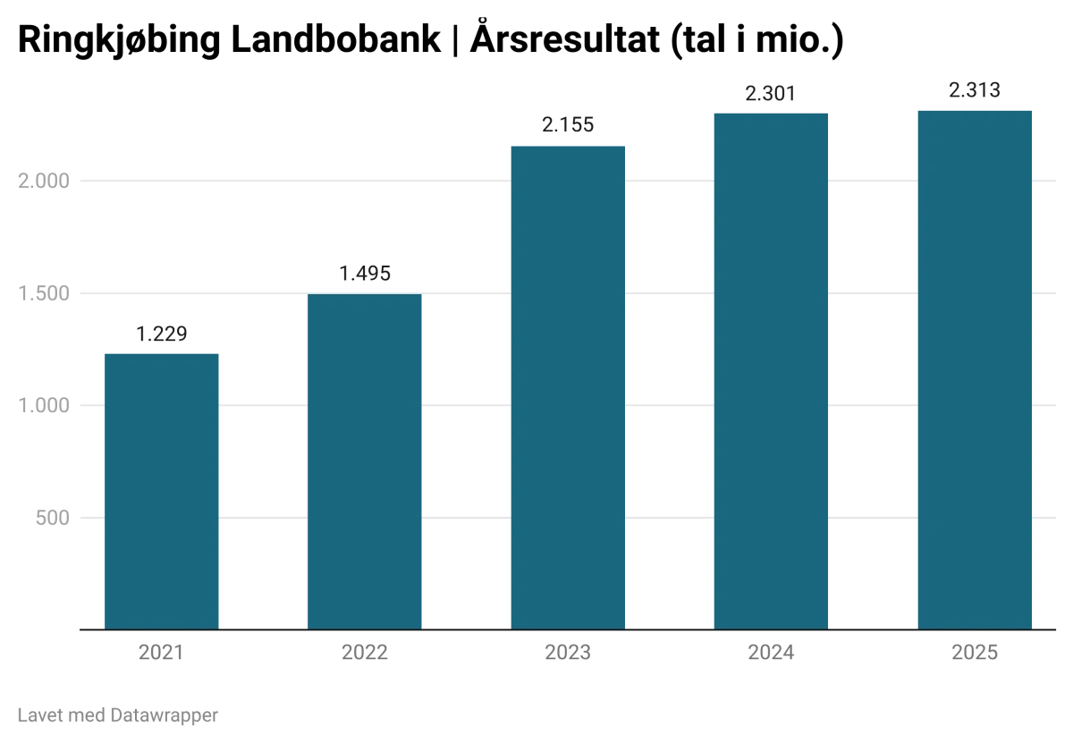 - Vi kommer til at huske 2025 som året, hvor den verdensorden, som vi har kendt og arbejdet efter, blev udfordret. Dette har medført nye geopolitiske udfordringer og et vedvarende behov for at investere i landets forsvar og beredskab. Til trods for dette blev det et godt år for dansk økonomi, og for Ringkjøbing Landbobank blev det et nyt rekordår. Resultatet efter skat steg til 2.313 millioner kroner, hvilket giver en egenkapitalforrentning på over 20 procent, siger han i forbindelse med regnskabet.