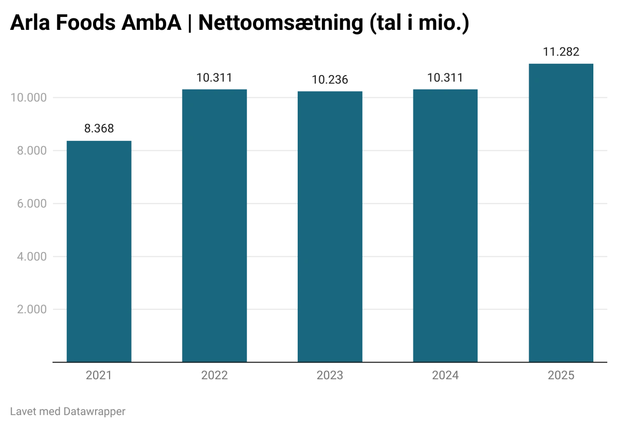 Det danske andelsejede mejeriselskab Arla Foods leverer sit stærkeste regnskab nogensinde efter et 2025, hvor både omsætning, mælkeindtag og mælkepris nåede rekordniveauer.