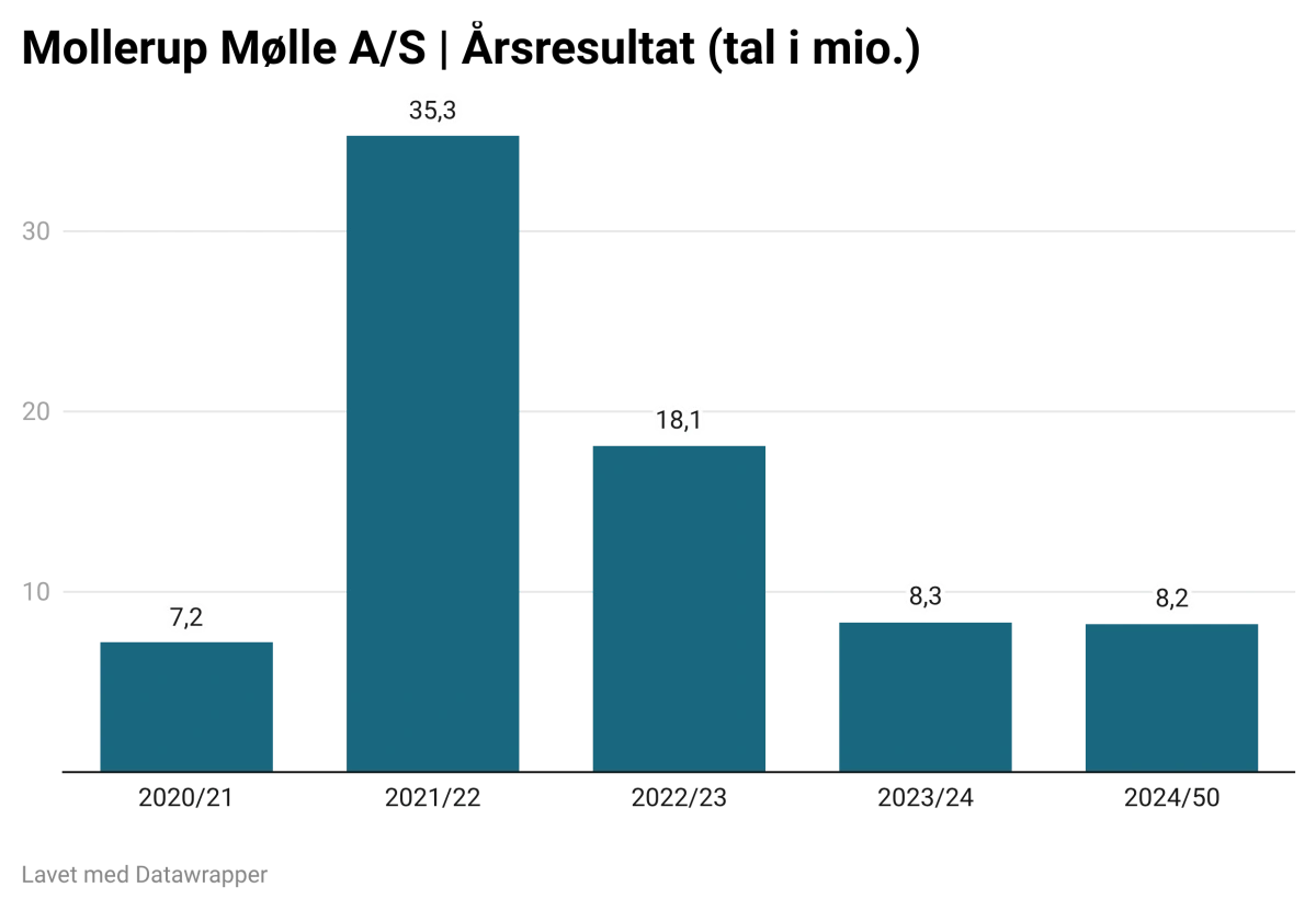 Den familieejede grovvarevirksomhed Mollerup Mølle A/S har fordoblet kornindtaget på fem år og lander en omsætning på 2,97 milliarder kroner. Og selvom bundlinjen gik en smule tilbage, investerer selskabet rekordstort i nye faciliteter og satser større på dansk landbrug end nogensinde.