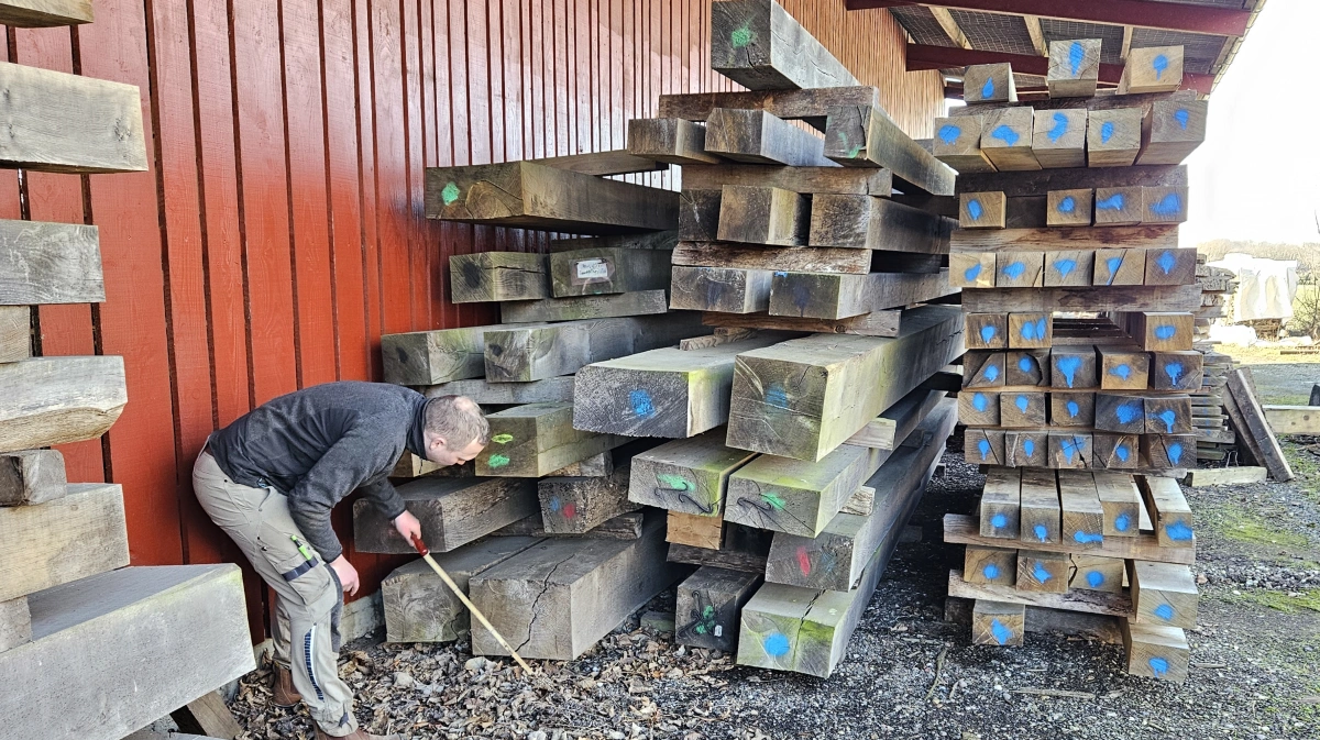 - Vi har noget kirketømmer liggende, som er nogle imponerede stykker træ. Det har især været Holgers speciale.