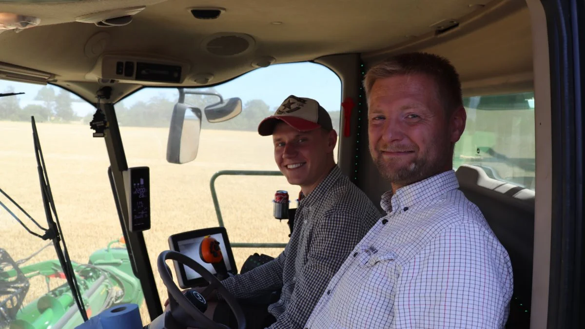 - Vi startede op i aftes i vårbygsorten Skyway på lidt dårlig jord. Men alligevel ser udbytterne lovende ud og til at ligge over middel.