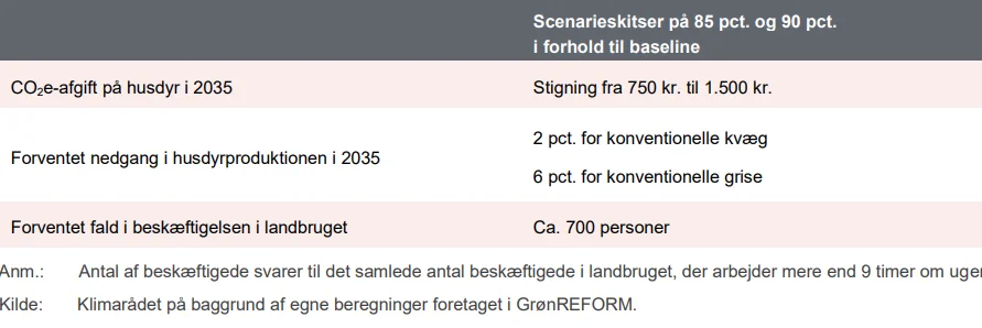 Samtidig fremhæver analysen, at en betydelig reduktion i antallet af husdyr sandsynligvis vil være nødvendig for at nå klimamålene frem mod 2050, hvor Danmark ikke skal udlede flere drivhusgasser, end der optages. Og ifølge regeringen skal det ske allerede i 2045.