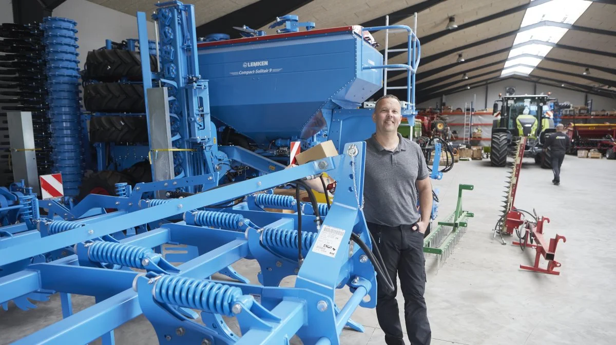 Blandt forhandlingerne af landbrugsredskaber er Lemken, som sælger Thomas Jensen her præsenterer, sammen med GreenTec, Bredal, Bogballe og flere andre agenturer.