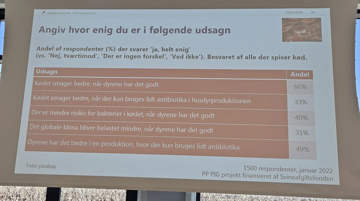 - Det vi ser, vil jeg kalde en begrænset betalingsvilje for bedre dyrevelfærd, lød det fra lektor Tove Christensen, da hun under SvineRådgivningens temadag i tirsdags præsenterede resultater fra en række undersøgelser over forbrugernes valg i forhold til svinekød.