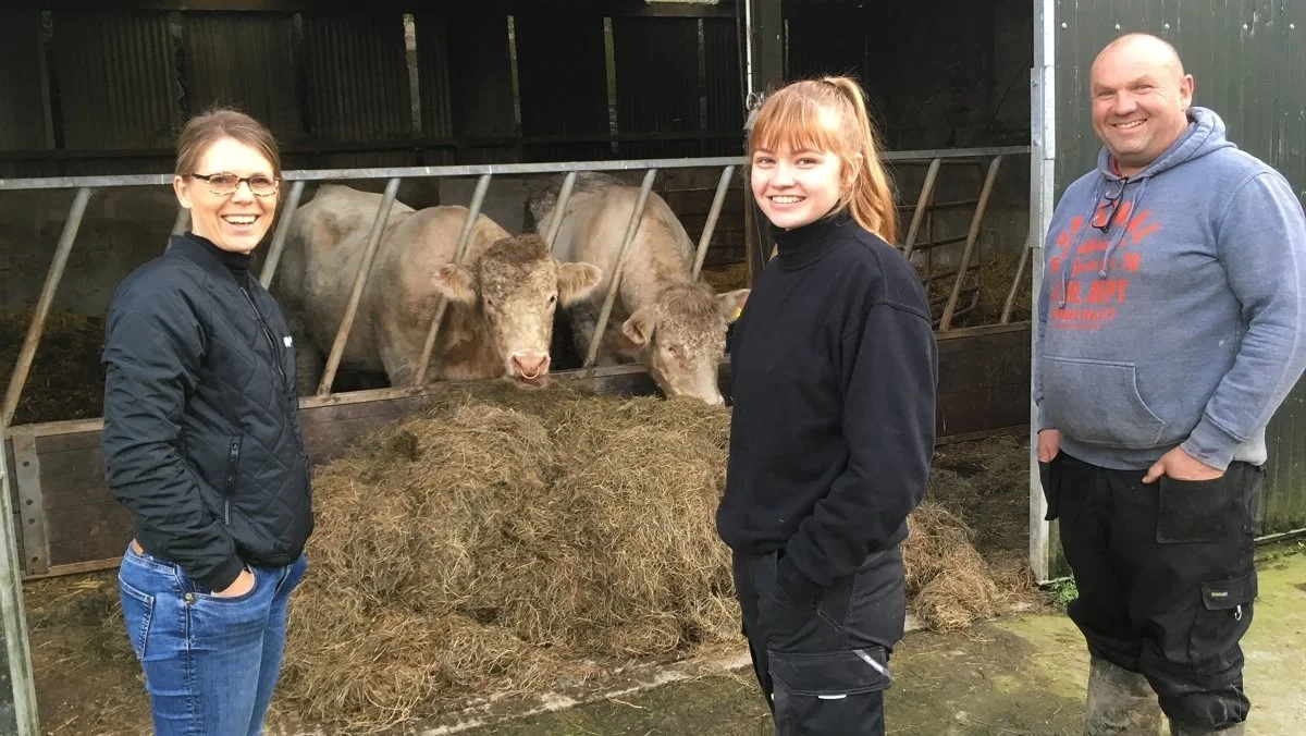 Dalum Landbrugsskole har tidligere sendt unge elever til blandt andet Irland. Her ses fra et ophold i 2019 fra venstre Mie Himmelstrup Vesterager, Eramsus-koordinator på Dalum Landbrugsskole sammen med EUX-elev Julie Pedersen og hendes irske praktikvært.